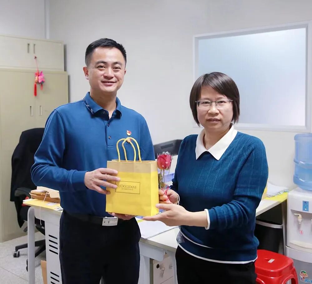 在黄穗汕董事长的领导下,谢秋生书记代表公司领导班子及工会向广大女员工的无私奉献表示衷心的感谢,为“女神们”送上了娇美的鲜花和精美的礼品,饱含着对女员工的浓浓关怀和真挚祝福,愿“女神们”手捧鲜花,芬芳岁月,笑靥如花,遍地阳光。