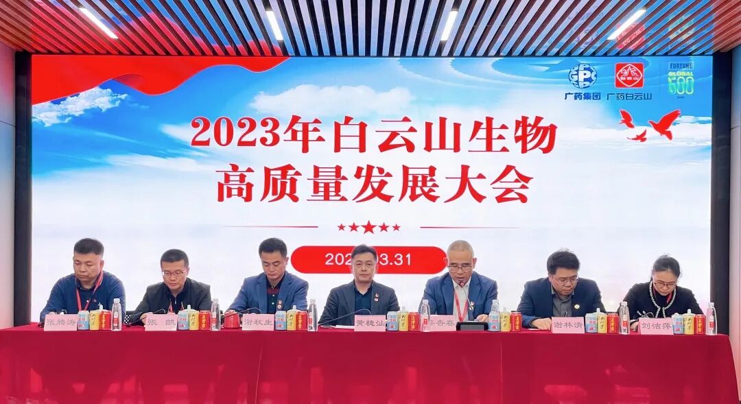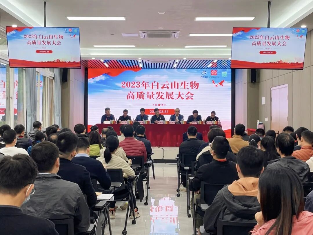 3月31日,白云山生物公司召开2023年高质量发展全员大会。为贯彻落实党的二十大精神和实现广药集团“双效提升年”的目标,公司董事长黄穗汕,党支部书记谢秋生,总经理蔡杏春带领公司全体员工参加了会议,驻厂监督员列席参与。
