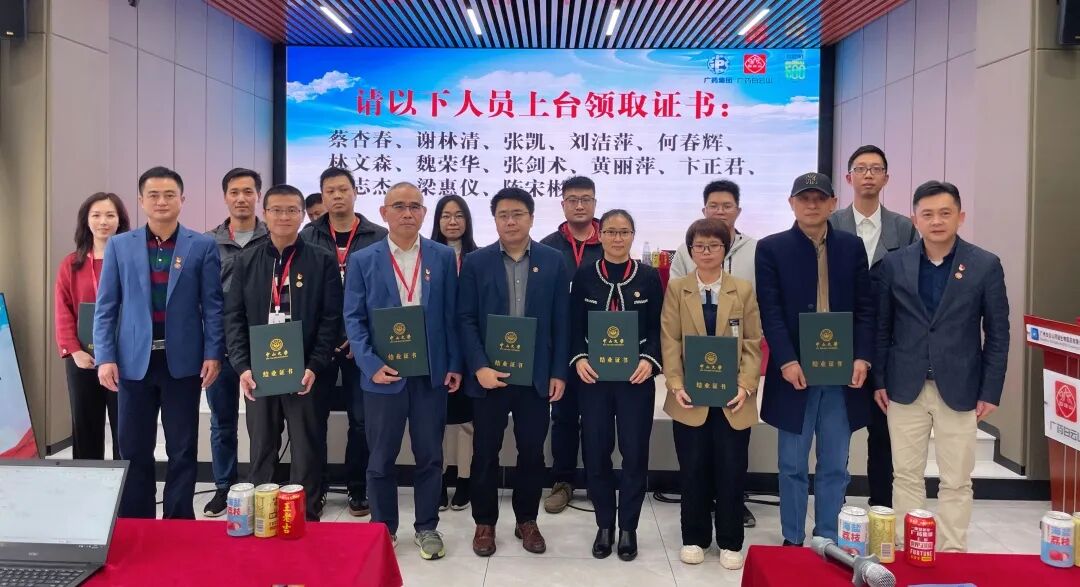 董事长黄穗汕、党支部书记谢秋生为中高层学员颁发培训证书