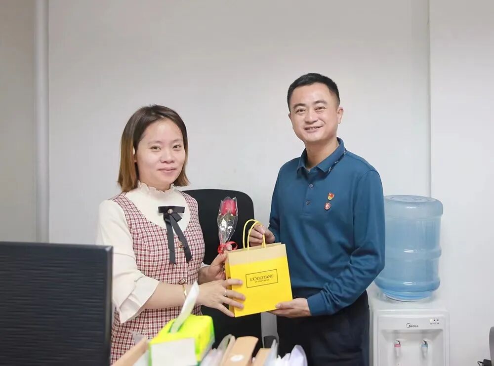 在黄穗汕董事长的领导下,谢秋生书记代表公司领导班子及工会向广大女员工的无私奉献表示衷心的感谢,为“女神们”送上了娇美的鲜花和精美的礼品,饱含着对女员工的浓浓关怀和真挚祝福,愿“女神们”手捧鲜花,芬芳岁月,笑靥如花,遍地阳光。